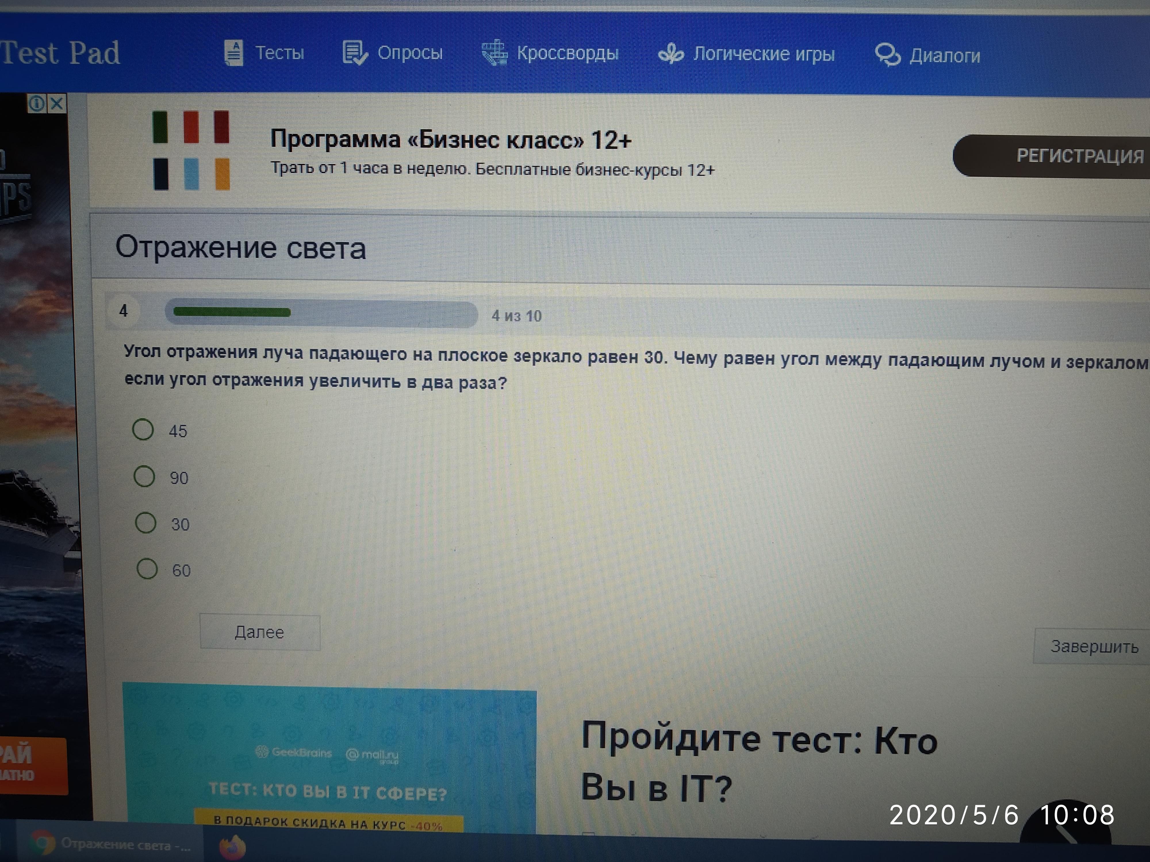 То есть угол отражения, как и угол падения в твоём случае равен , но от нас требуют увеличить его в ДВА раза