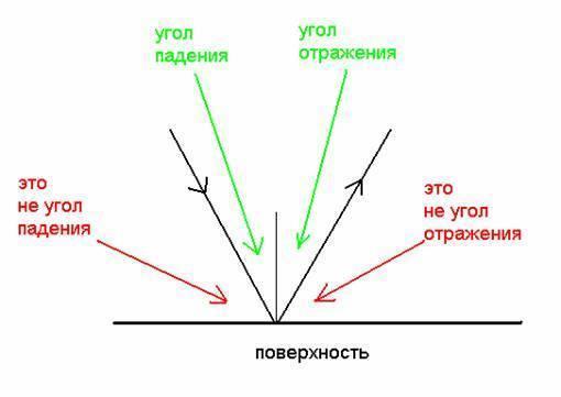 Угол ПАДЕНИЯ равен углу ОТРАЖЕНИЯ