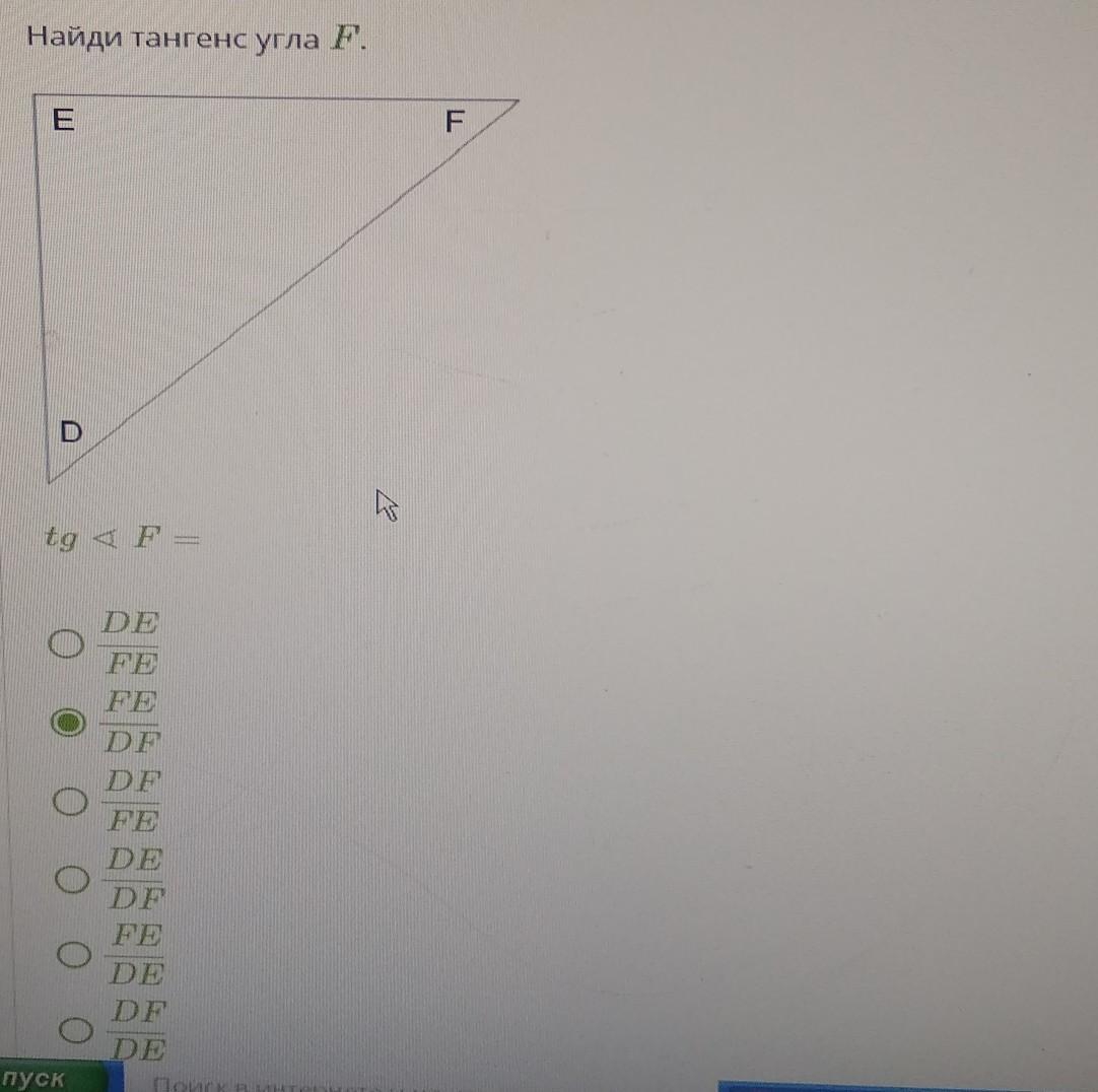 Тангенс угла= отношение противолежащего катета к прилежащему