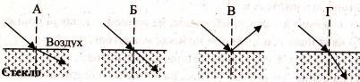 Луч света проходит из воздуха в стекло (рис.). Где верно изображен ход преломленного луча?