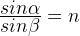 2) Отношение синуса угла падения к синусу угла преломления равно показателю преломления среды: в приложении формула.
