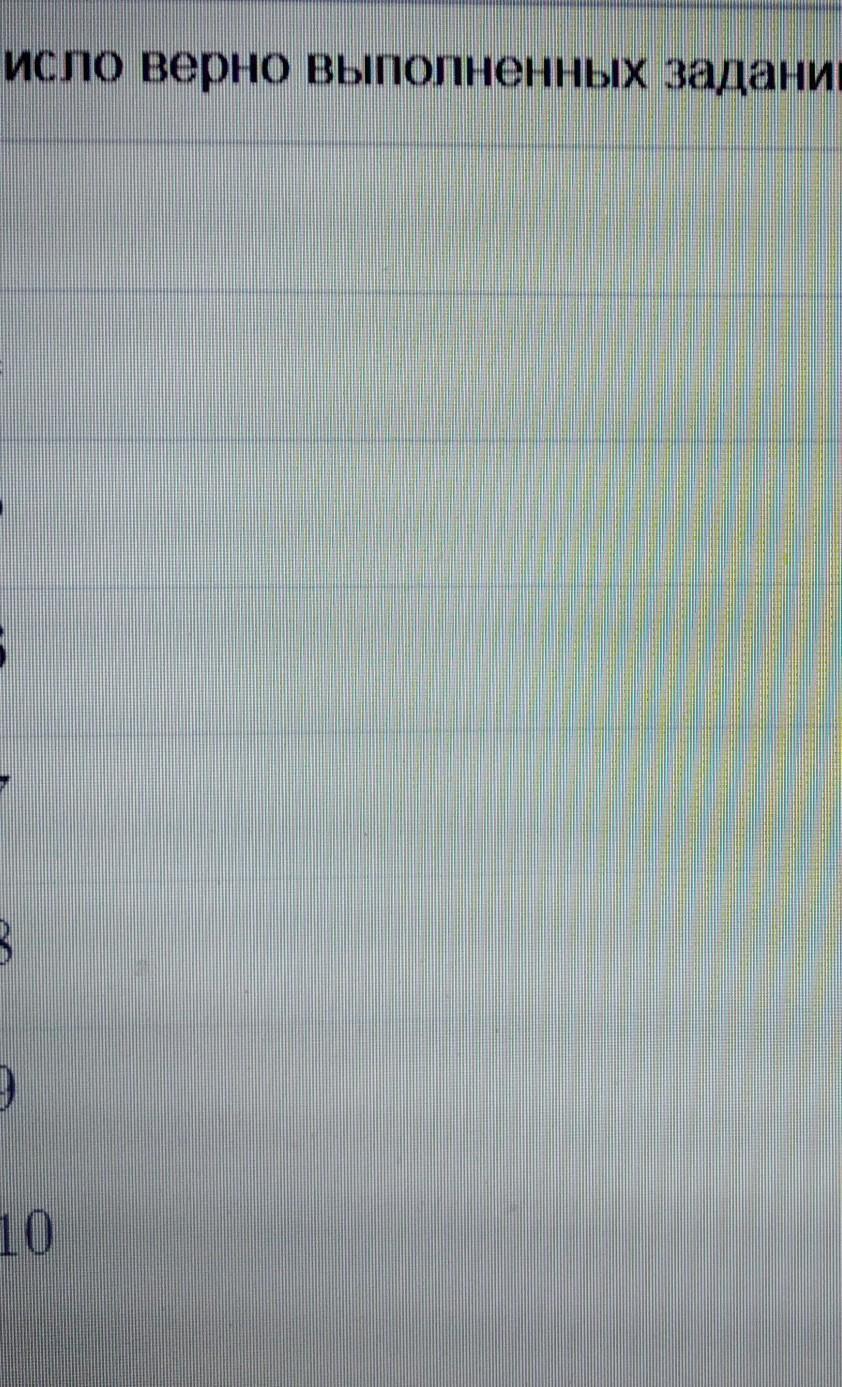 подсчитывает число заданий, верно выполнение восьмиклассников в итоговом тесте по алгебре получили такие данные: 8, 10, 7, 7, 5, 6, 8, 4, 3, 3, 3, 7, 5, 5, 5, 4, 6, 10, 9, 9, 8, 8, 8, 5, 5, 4, три, четыре, пять. представьте эти данные в виде таблицы частот.