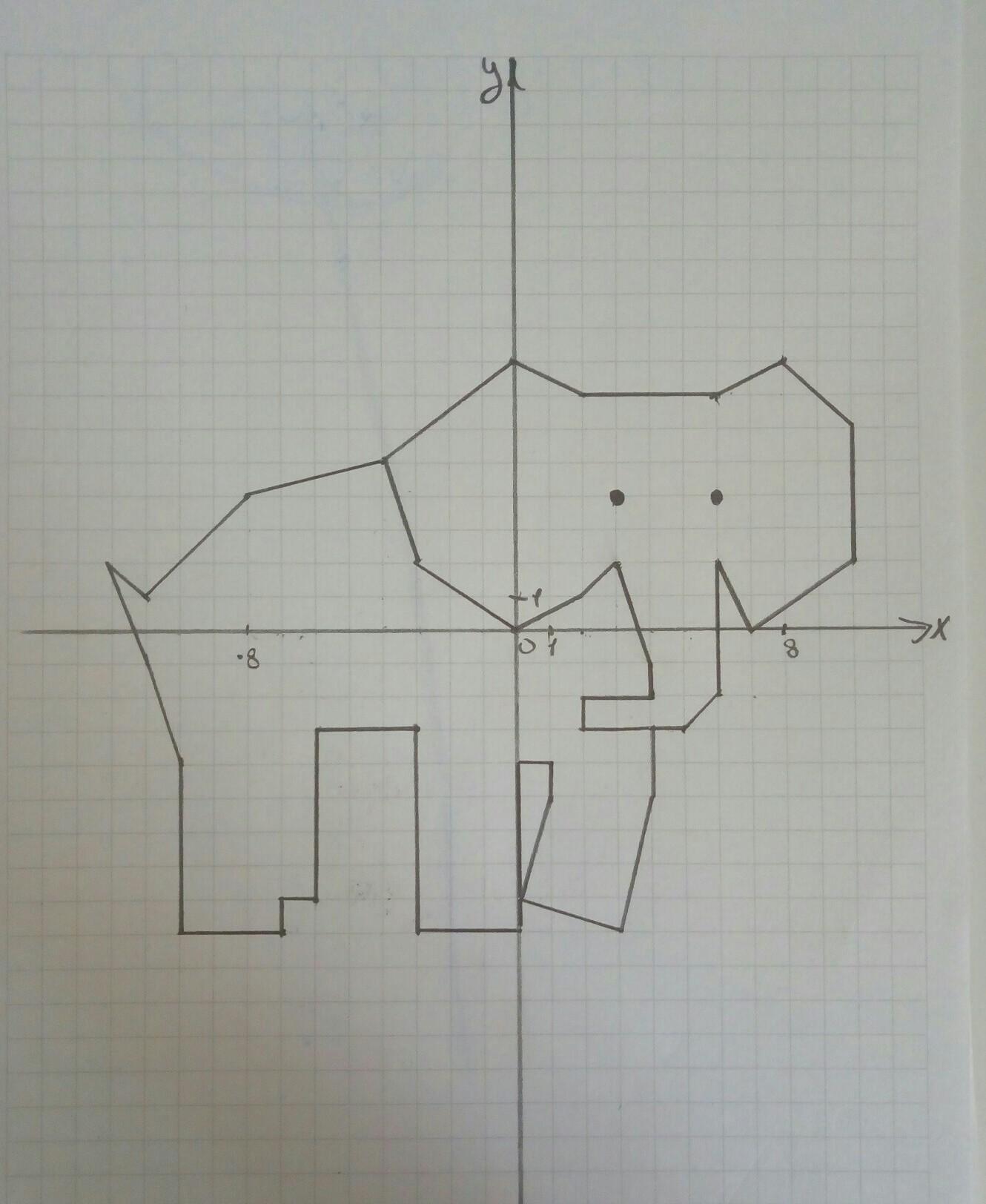 на координатной плоскости надо искать и соединять последовательно точки. получится слон