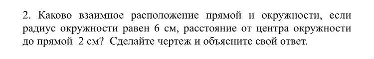 Рисунок надо нарисовать и сделать вывод: окружность и прямая ... (пересекаются, касаются, не пересекаются) потому что ...