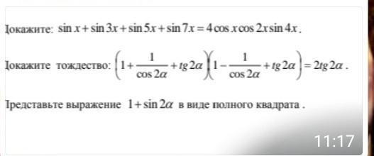 и формулой синуса двойного аргумента sin2x=2sinx*cosx и формулой, известной из алгебры, а²+2ак+к²=(а+к)²