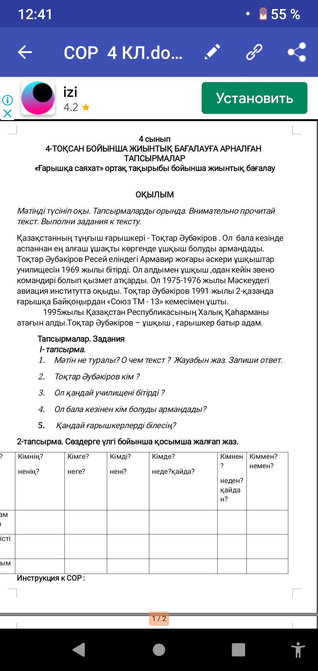 Мәтін еліміздің тұңғыш ғарышкері Тоқтар Әубакіров туралы