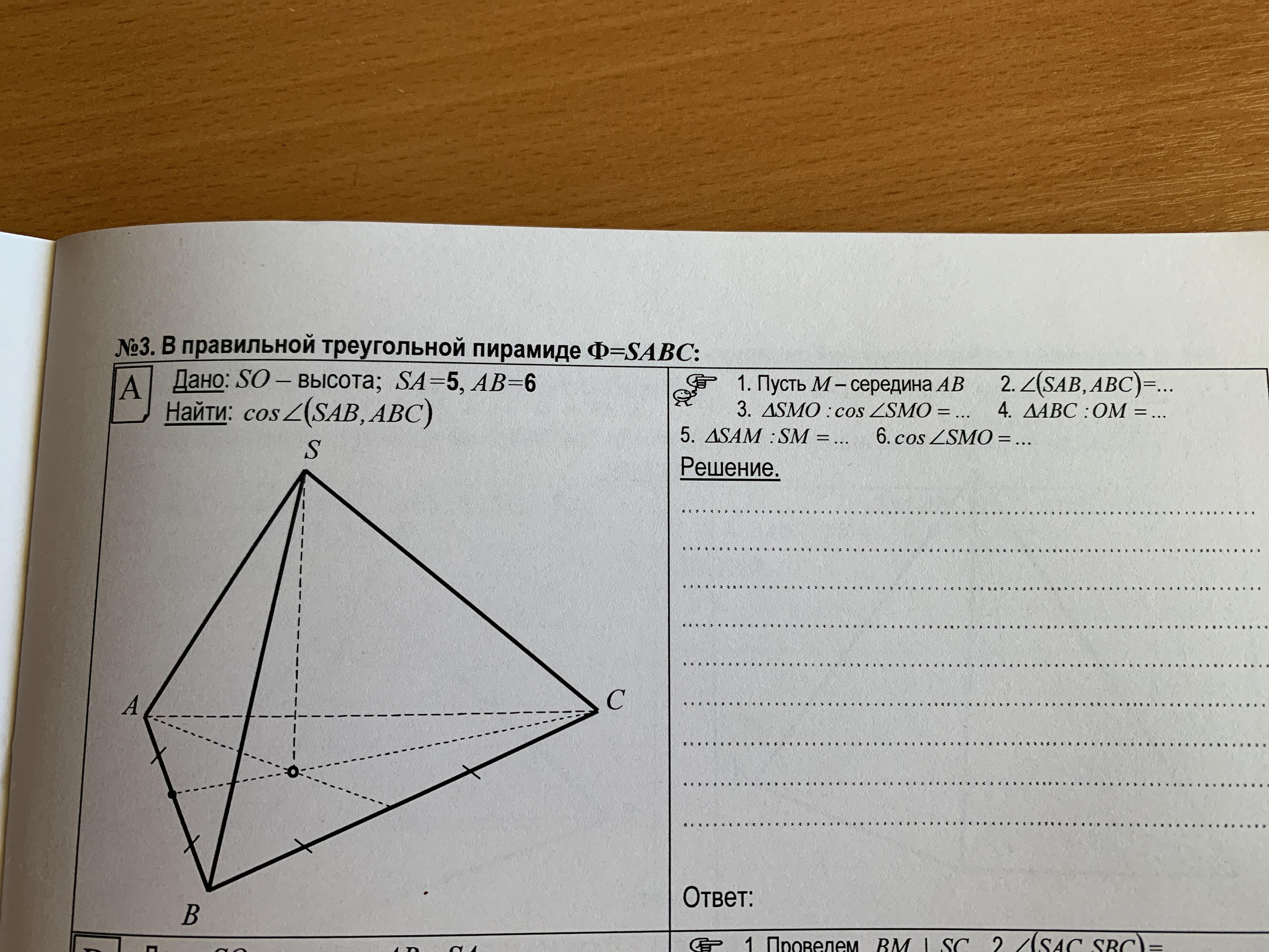 Найти: cos(SAB, ABC)