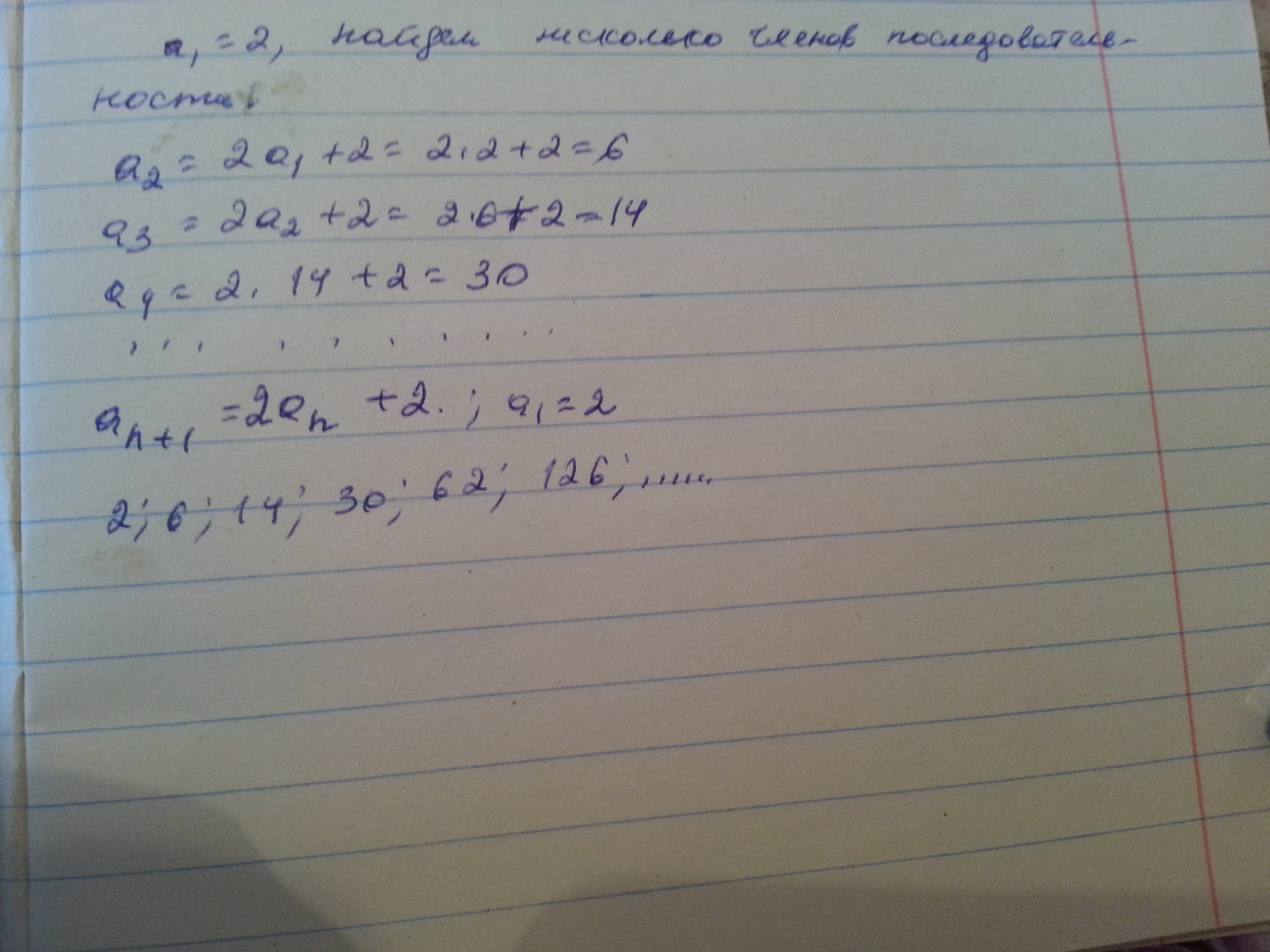 Последовательность начинается с числа 2,а каждое следующее число получается из предыдущего в два этапа :сначала предыдущее число нужно увеличить в 2 раза,а потом получившееся число нужно увеличить на 2.напишите пример пожалуйста!