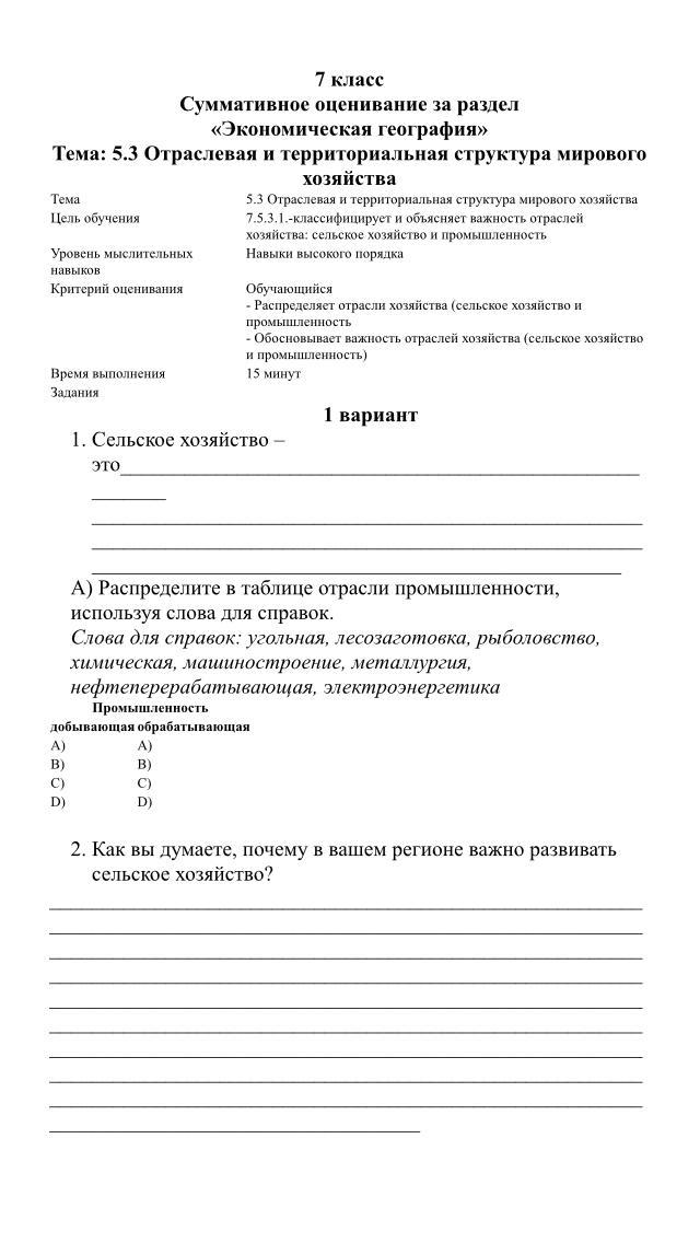 Сор 7 класс 4 четверть по географии помогите пожалуйста