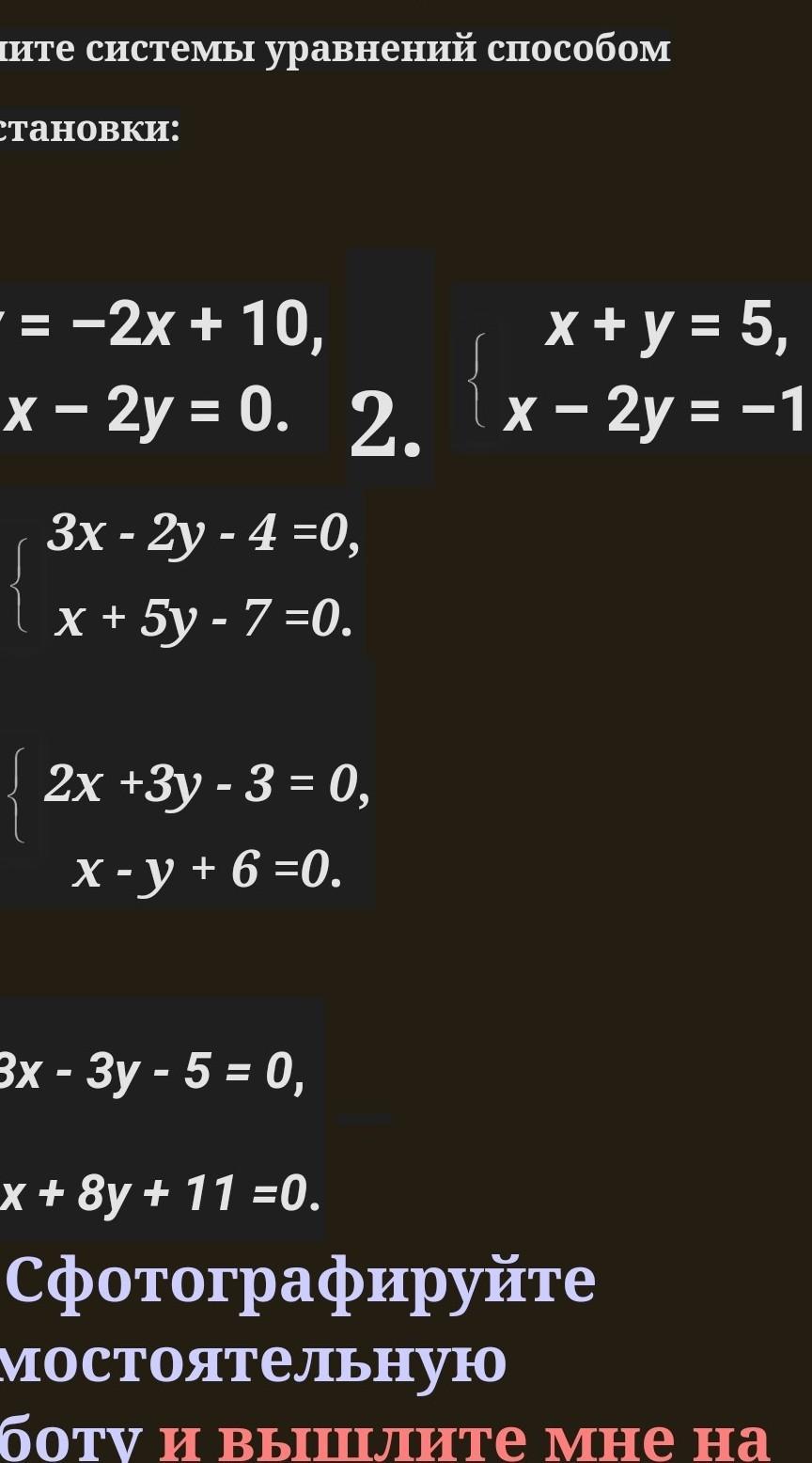 решите системы уравнений способом подстановки