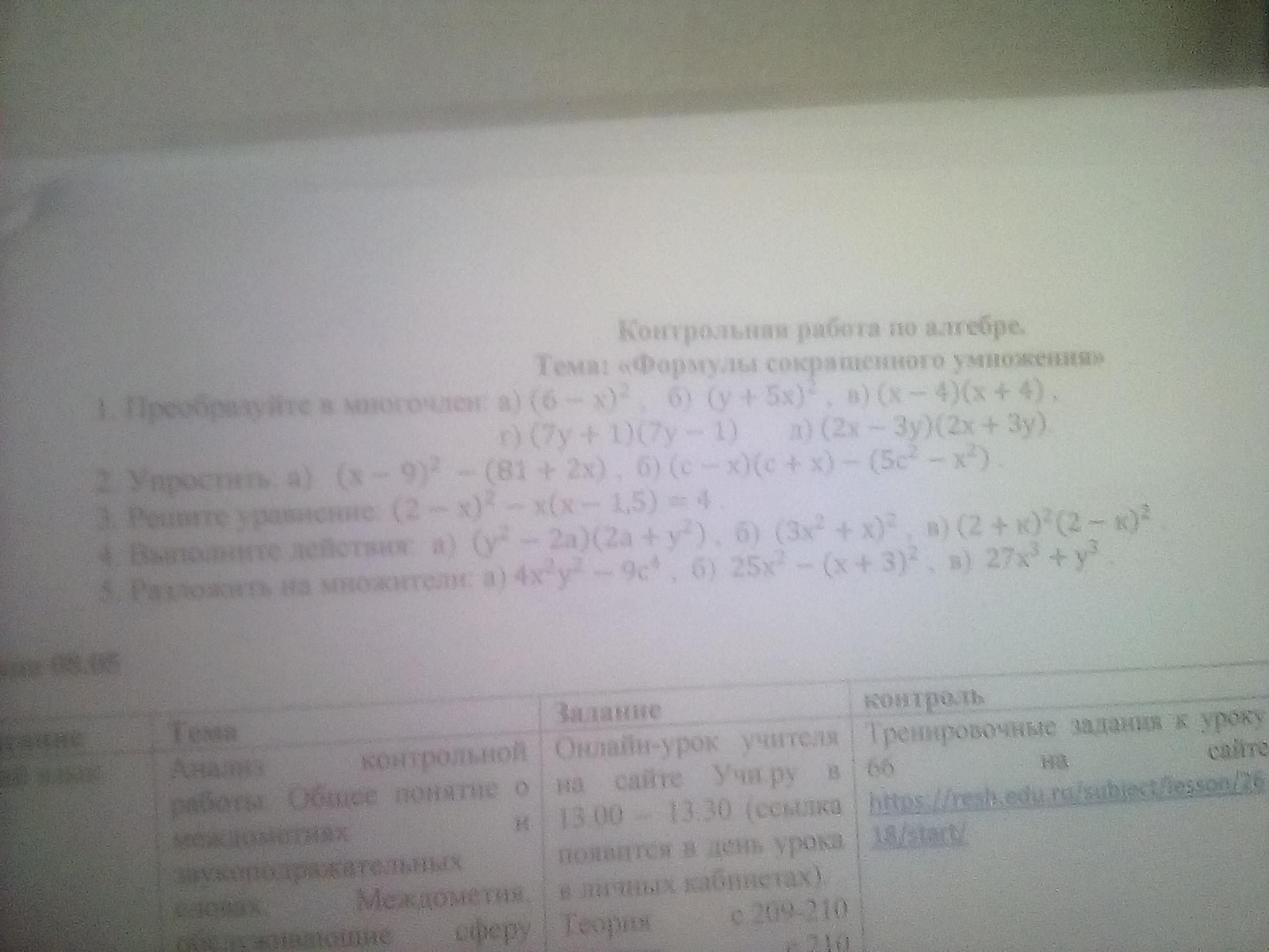 формула сокращ. умножения