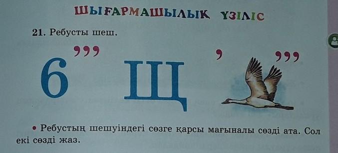 • Ребустың шешуіндегі сөзге қарсы мағыналы сөзді ата. Сол