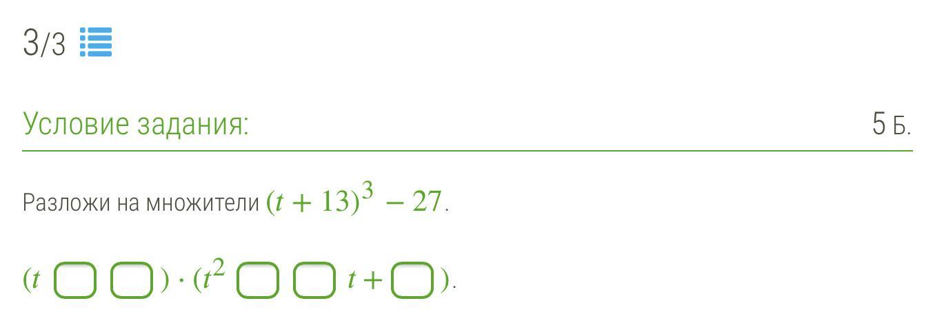 (t+13)3−27=(t+13)*3−3^3=(t+13-3)*((t+13)^2-3*(t+13)-9)=