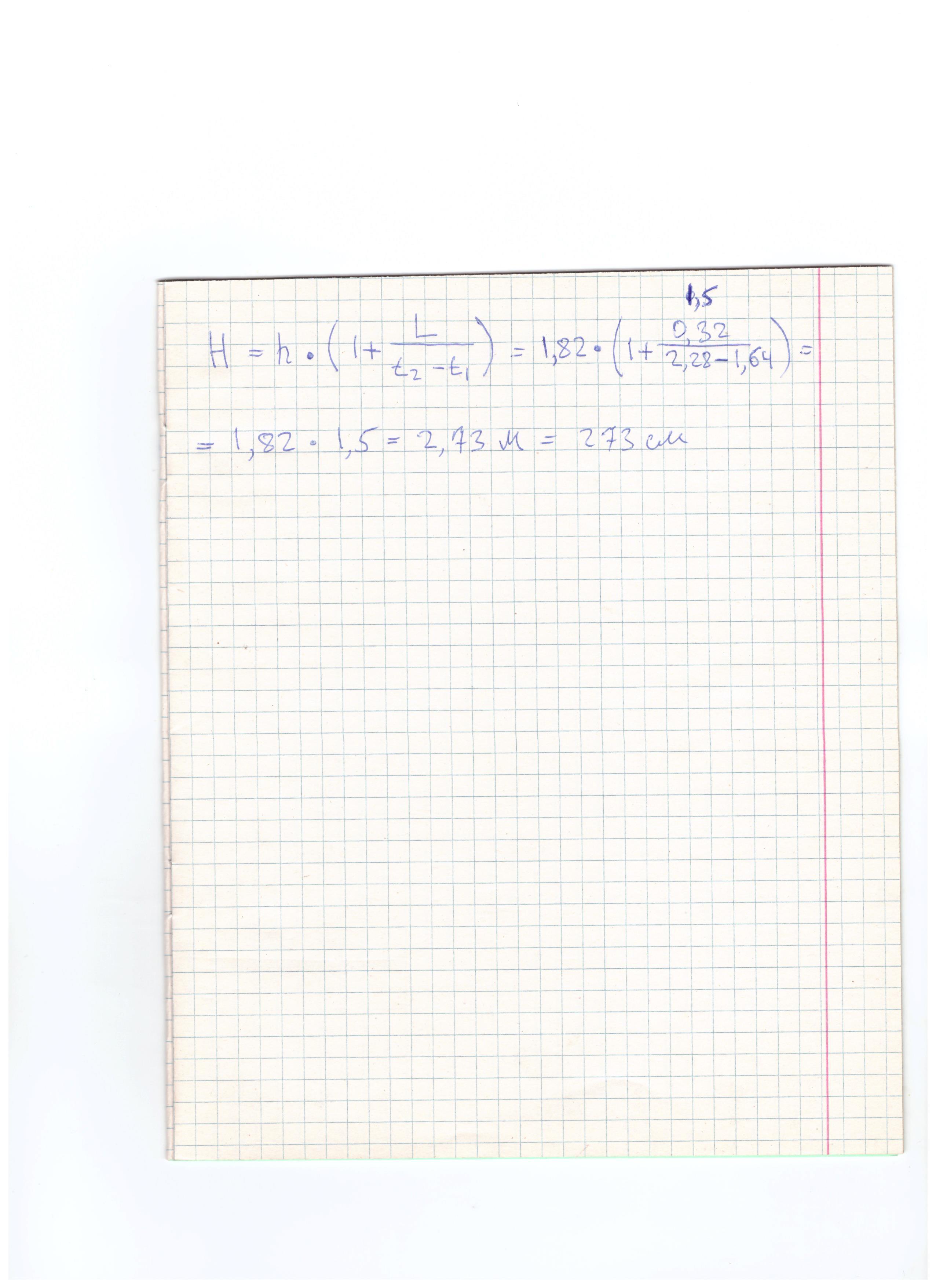 Y = H * (S2 - S1 + 10) / (S2 - S1) = 179*30/20 = 268.5