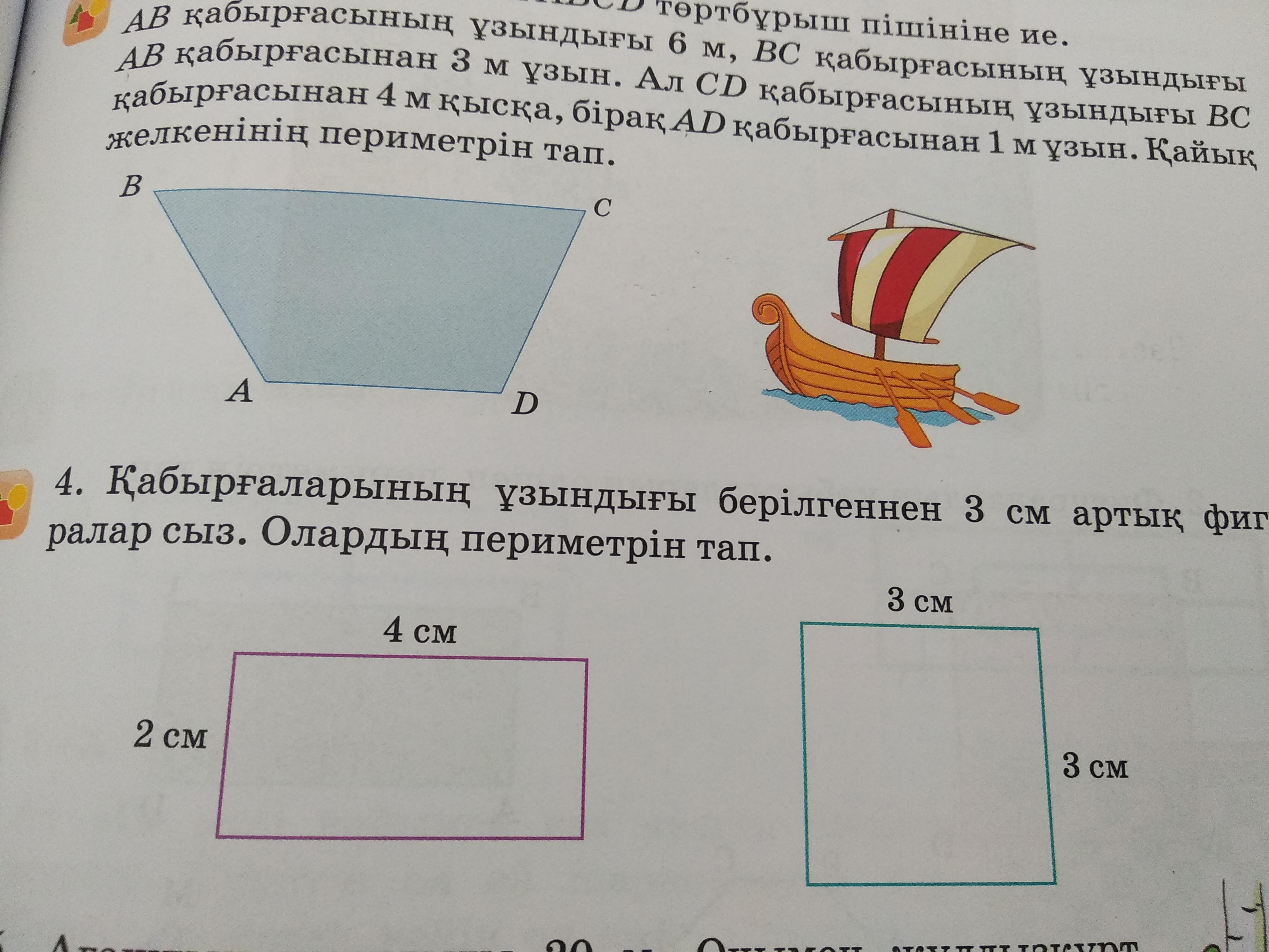 Қабырғаларының ұзындығы 3 см артық фигуралар сыз.Олардың периметрін тап