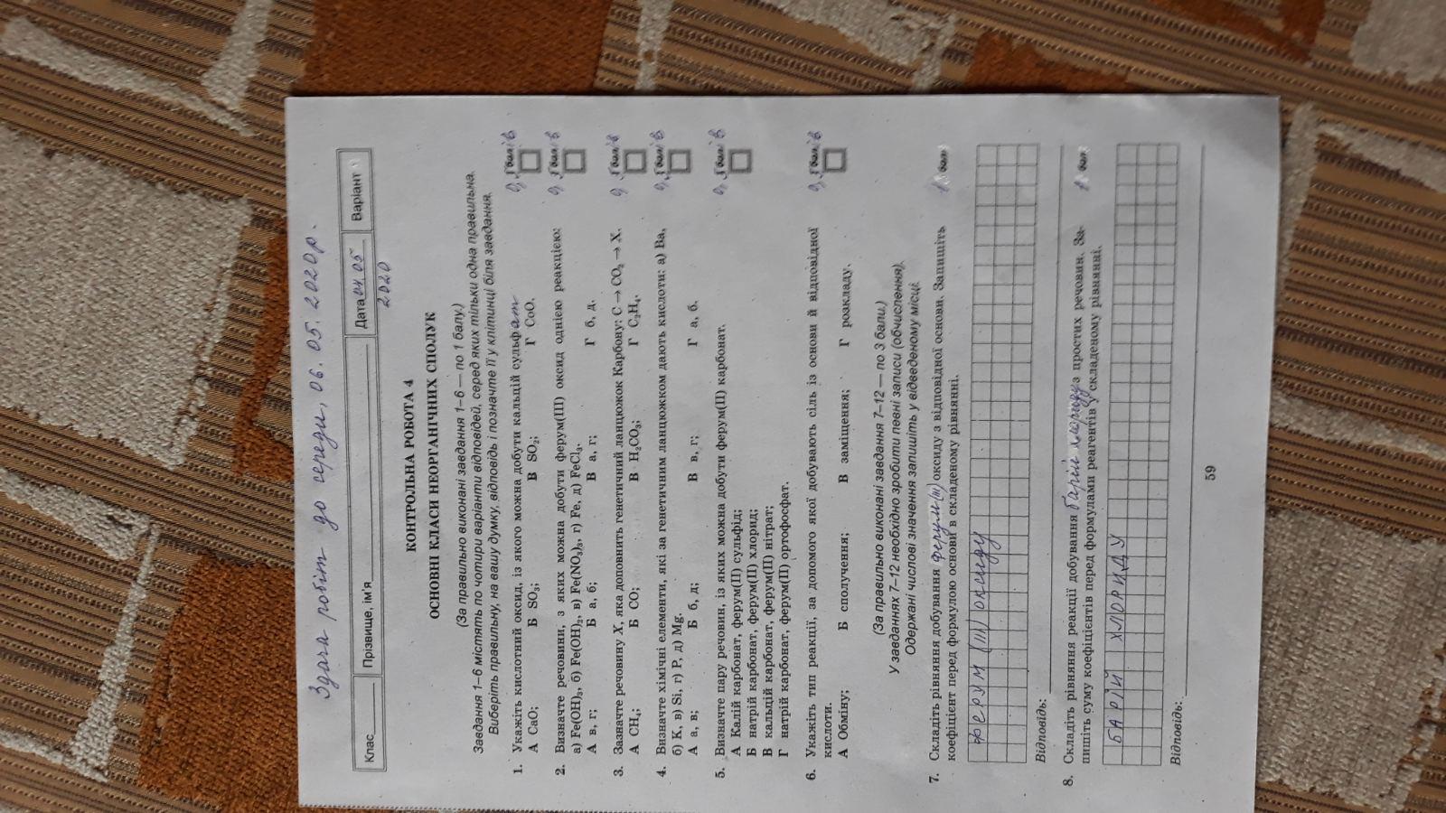 Допоможіть сделать конт роботу з хімії срочно, зарание спасибо