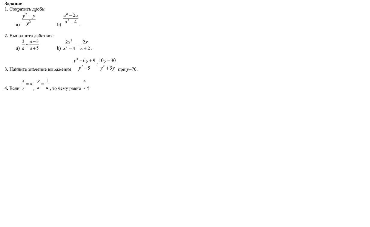 Суммативное оценивание за раздел «Алгебраические дроби»