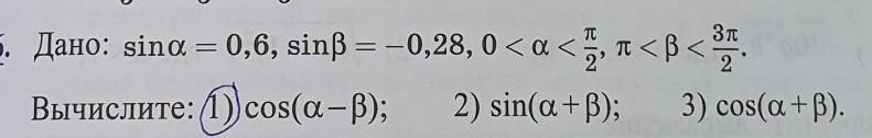 Дано : sin a =0,6 ; sin b=-0,28 ; 0<a<п/2 ; п< b<3п/2.