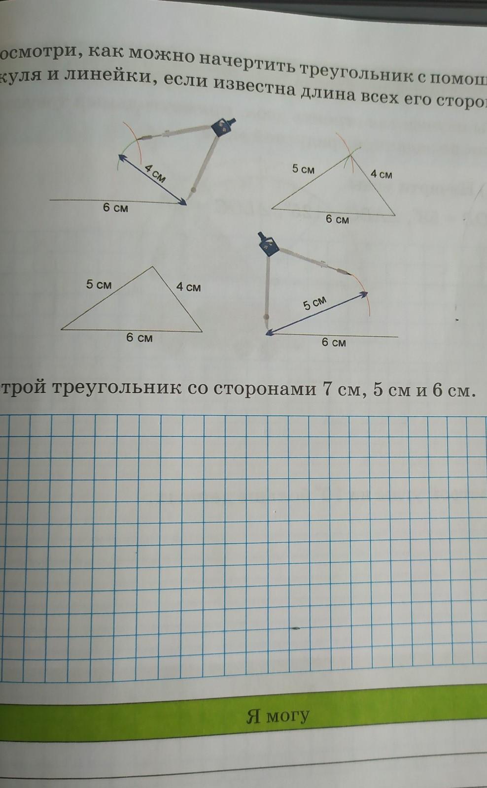 Посмотри как можно начертить треугольник с помощью циркуля и линейки Если известна длина всех сторон