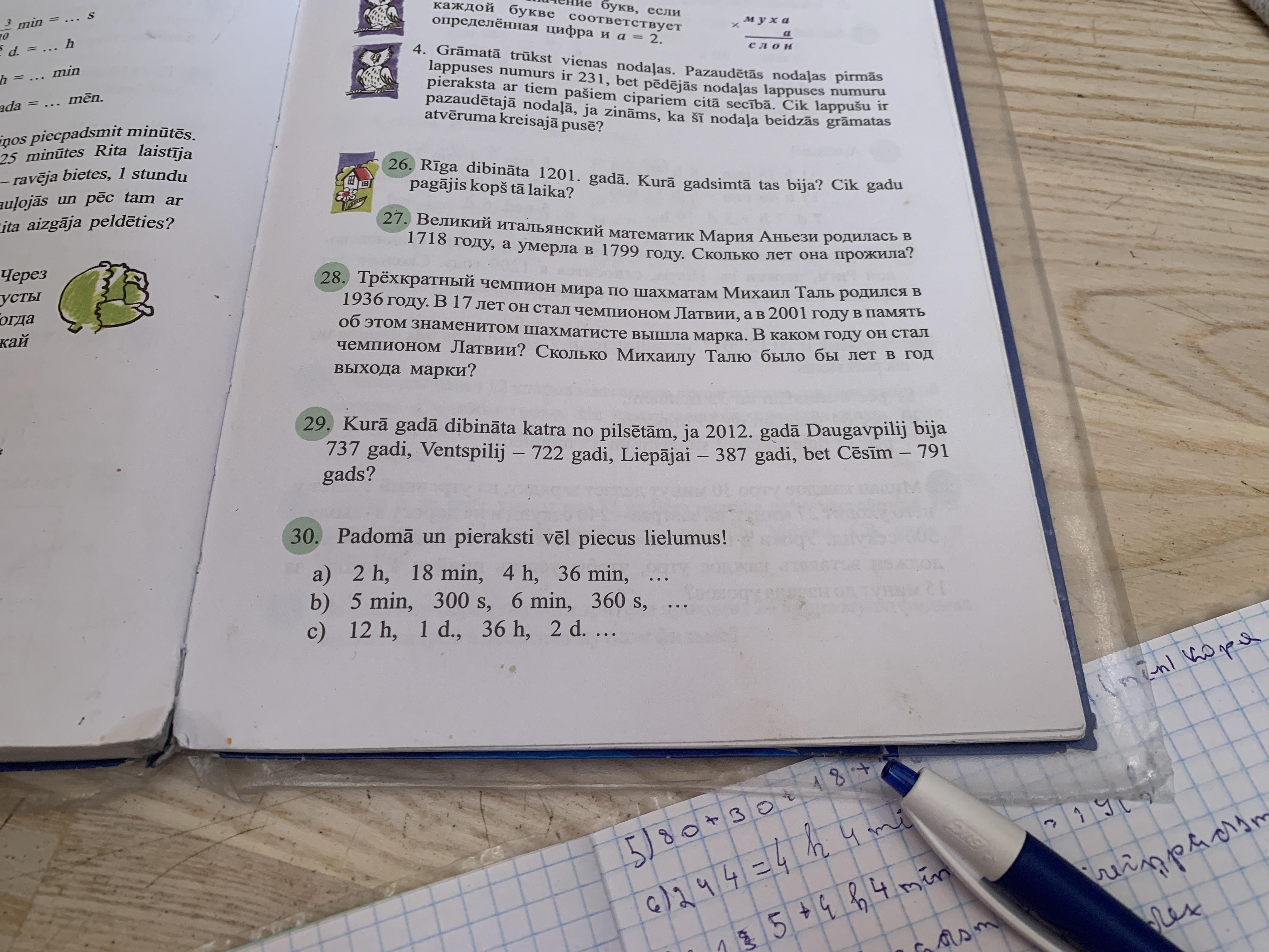 Помогите пожалуйста решить 29 задание, вот перевод: 29.Задание.В каком году был основан каждый из городов, если в 2012 году Даугавпилсу было 737 лет, Вентспилсу было 722 года, Лиепае было 387 лет, а Цесису было 791 год?