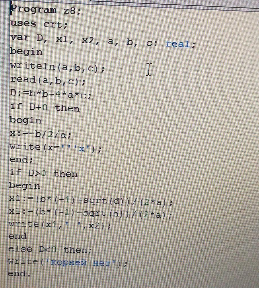 Помогите найти ошибки, замучалась уже. Программа: решить кв. уравнение.