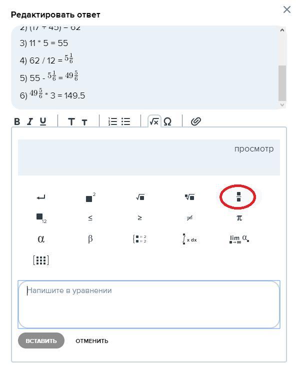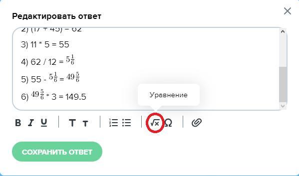 Ответ:( 25 - 14 ) · 5 - ( 17 + 45 ) : 12 · 3 = 149.5