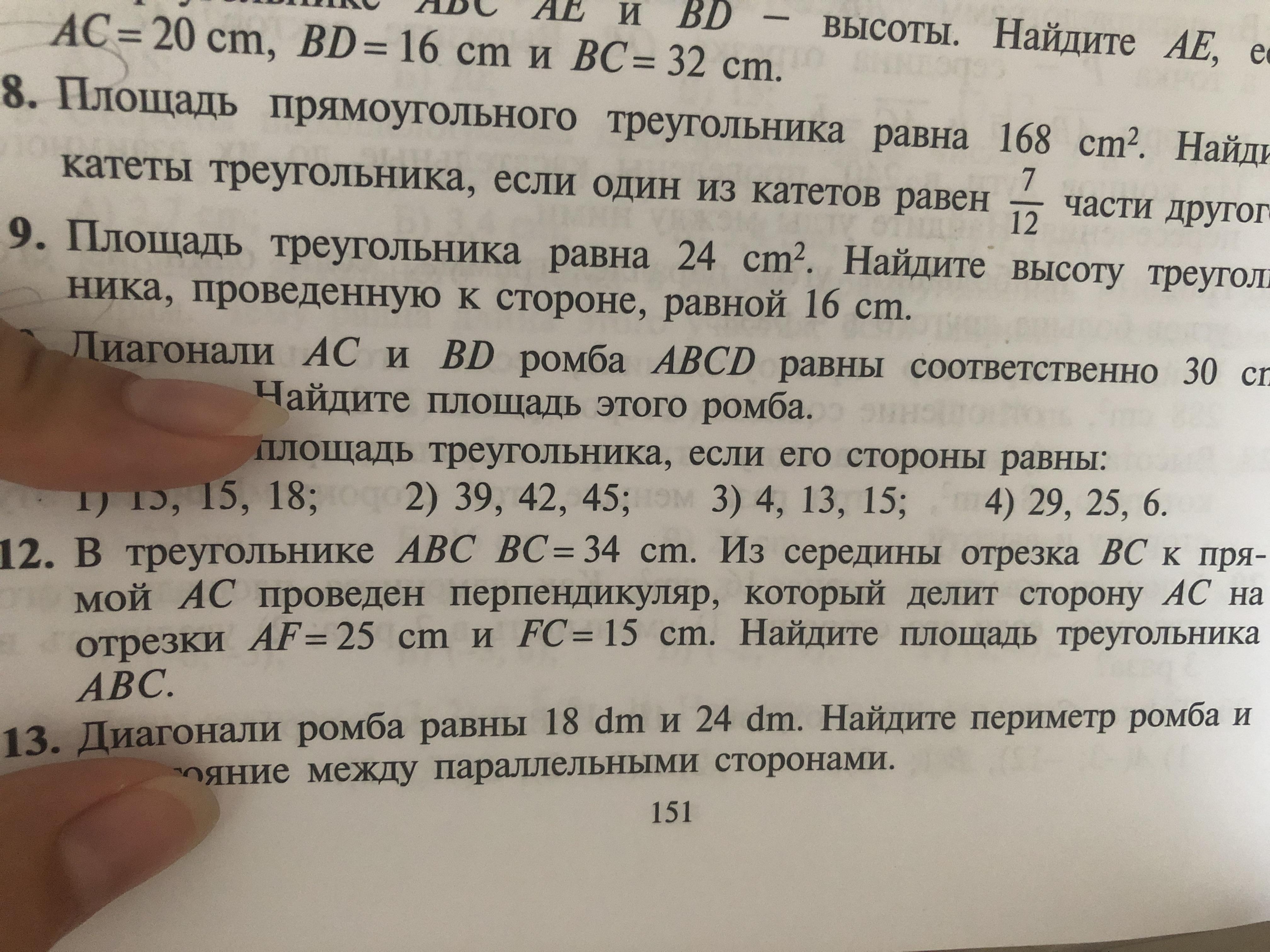 Треугольнике ABC BC=34 см Из середины отрезка BC к прямой AC проведен перпендикуляр, который делит сторону AC на отрезке AF= 25 см и FC=15 см найдите площадь треугольника ABC