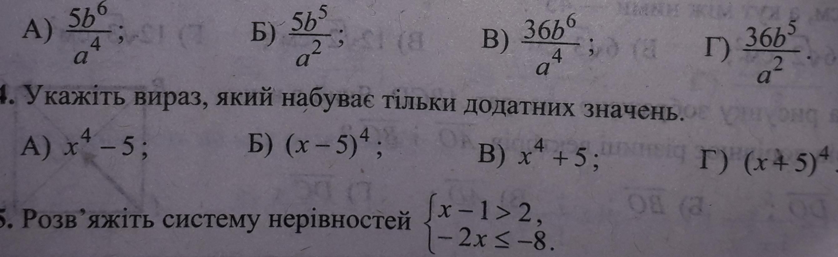 б) яким би не був х, (х-5)^4 буде набувати додатних значень. так само і інші..