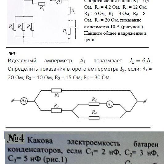 идеальный амперметр А1 показывает I1 = 6A. Определить показания второго амперметра I2, если: R1=20 Ом; R2= 10 Ом; R3= 15 Ом; R4= 30 Ом