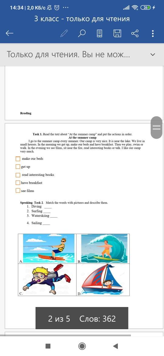 Ответ:Task 1 have breakfast Task 2. 1)c 2)B 3)A 4)D