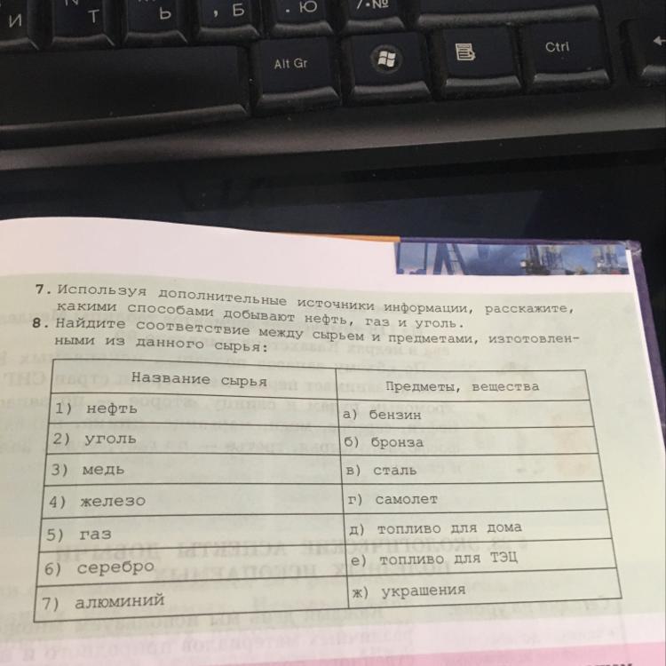 9. Найдите соответствие между сырьем и предметами, изготовле