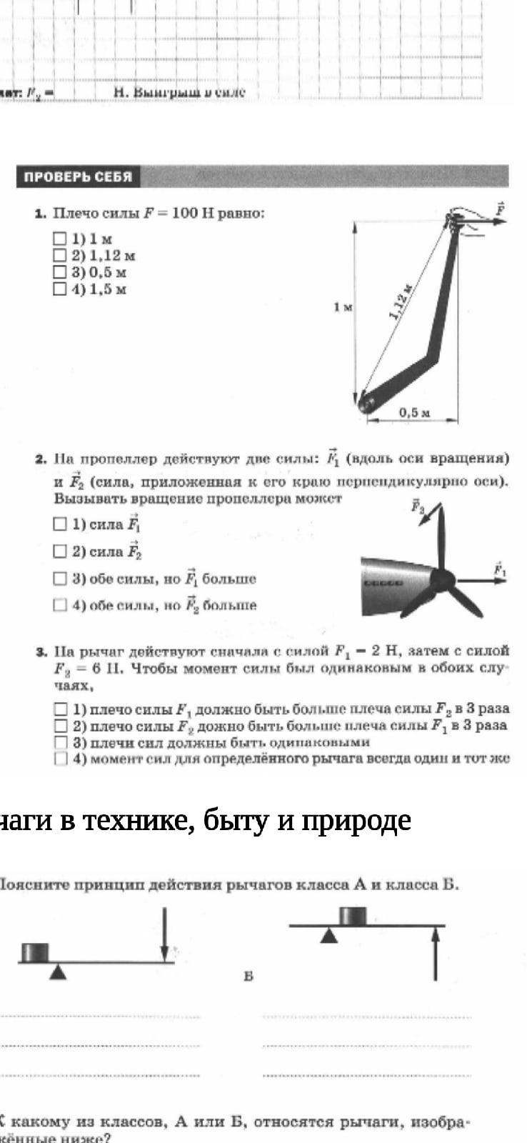 Решите пожалуйста Проверь себя и Рычаги в технике, быту и природе . Даю 40 баллов