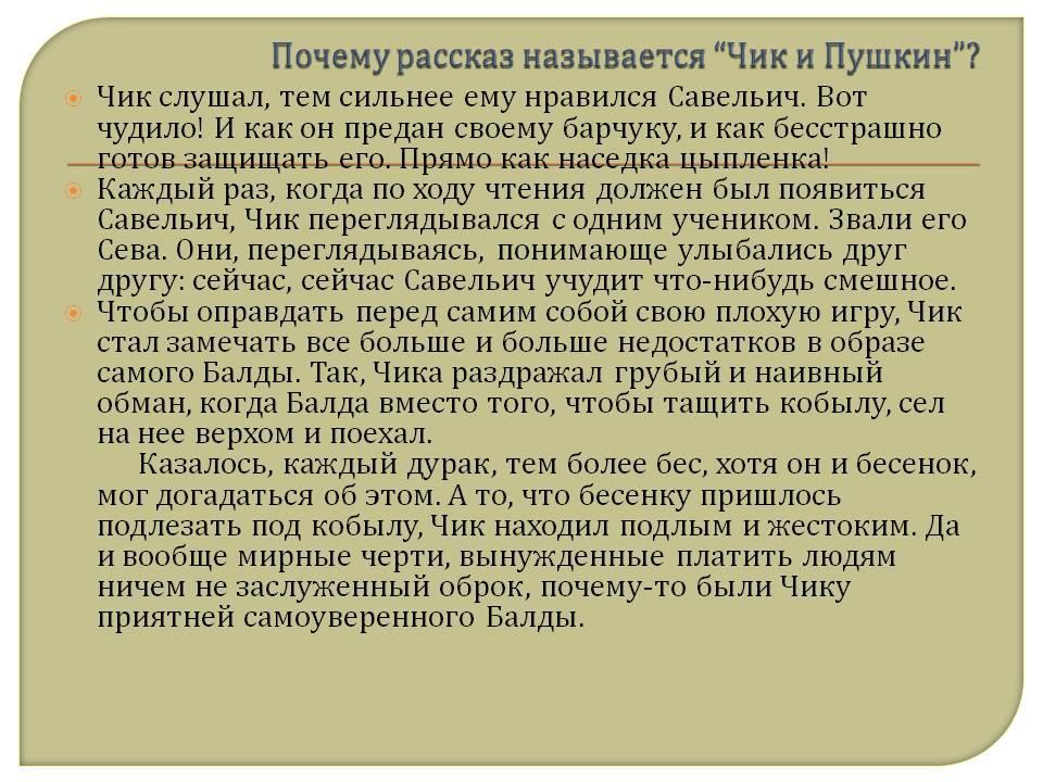 Почему глава называется "Чик и Пушкин"? (5 предложений) отвнти: