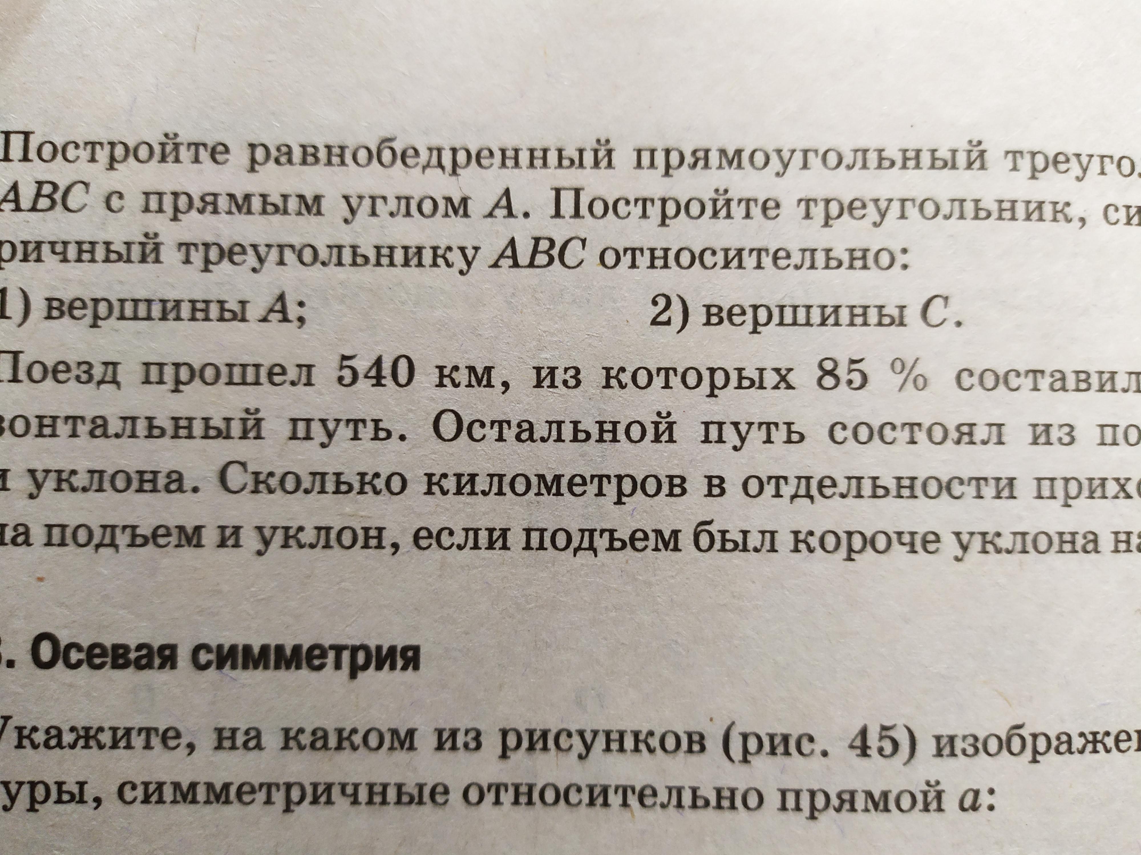 постройте равнобедренный прямоугольный треугольник ABC с прямым углом A. Постройте треугольник, симметричный треугольнику ABC относительно 1) Вершины A 2) Вершины C