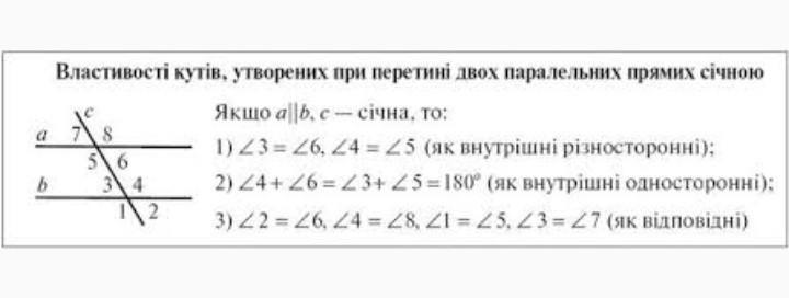 Один із кутів що утворилися при перетині двох паралельних прямих січною, дорівнює 71°. Знайдіть решту сім кутів.
