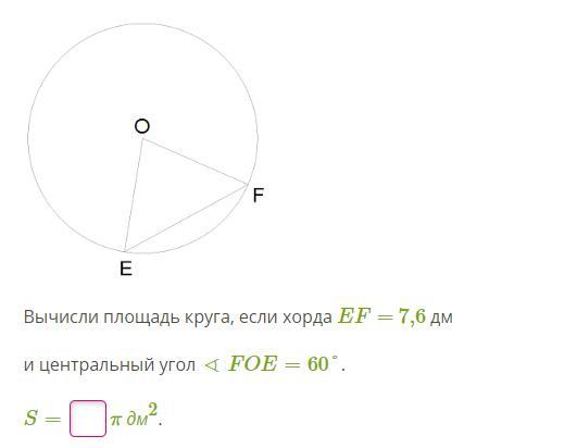 Вычисли площадь круга, если хорда EF= 7,6 дм