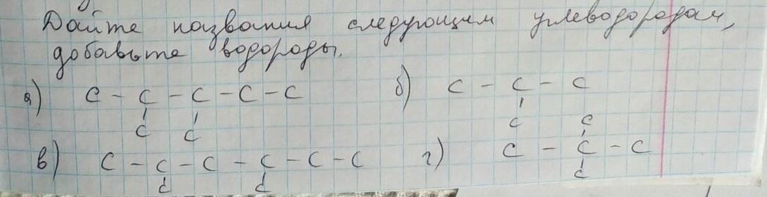 дайте названия следующим углеводородам, добавьте водороды , пожалуйста помогите, очень срочно.
