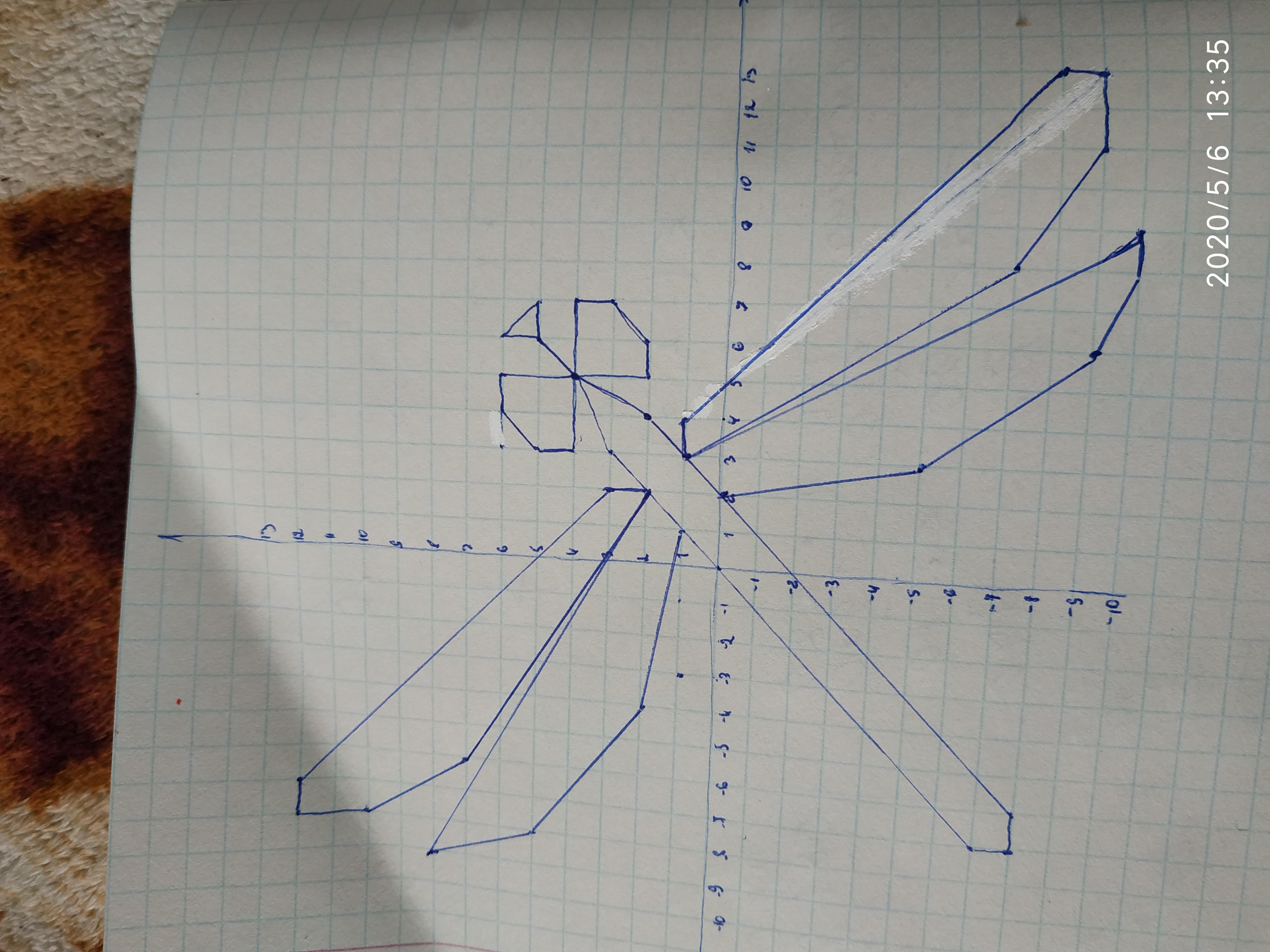 - (5;4);(3;3); (-7;-7);(-7;-8);(-6;-8);(4;2);(5;4);(5;6); (4;6); (3;5); (3;4); (7;4); (7;3); (6;2); (5;2); (5;4); (6;5);(7;5); (6;6); (6;5);