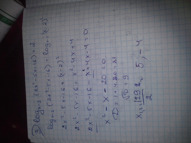 3) Log (2x^2-5x-16) по основанию x-2 = 2
