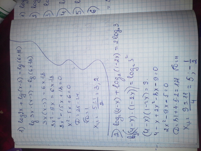 2) Log (4-x) по основанию 2 + log (1-2) по основанию 2 = 2Log 3 по основанию 2