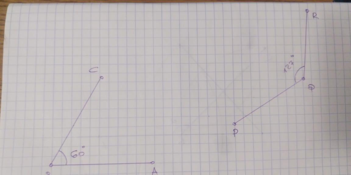Начертите с помощью транспортира следующие углы, взяв за вершину каждого угла соответственно точки B и Q а) АВС=50° b) PQR=127°