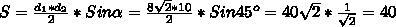 Площадь параллелограмма равна половине произведения диагоналей на синус угла между ними .