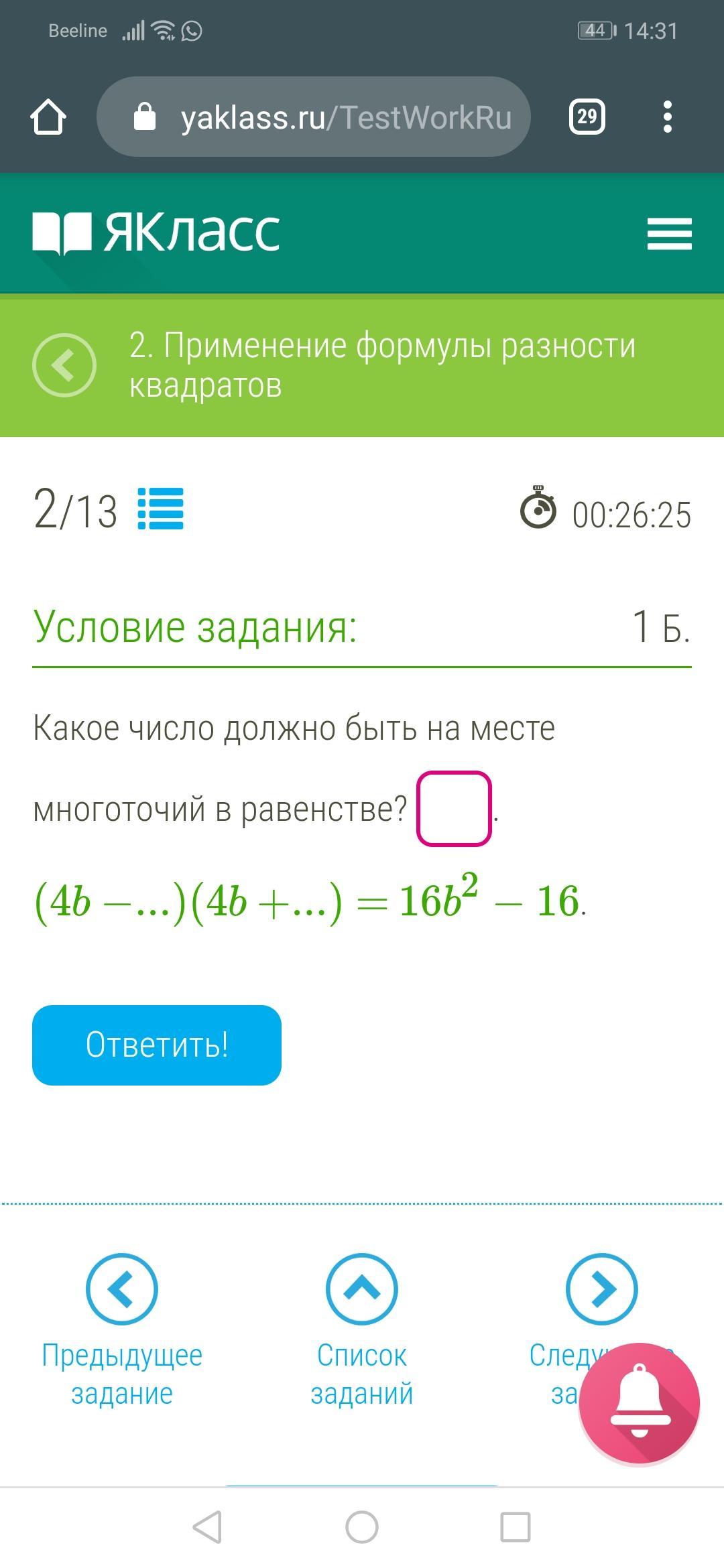 Так как выражение 16b^2-16 раскладывается как (4b-4)(4b+4)