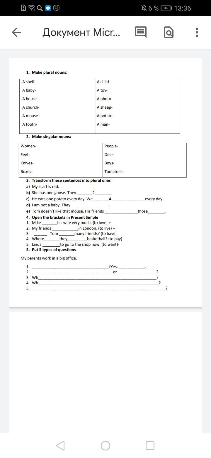 Shelf-shelves;baby-babies;house-houses;church-churches;mouse-mice;tooth-teeth;child-children;toy-toyes;photo-photoes;sheep-sheep;potato-patatoes;man-men
