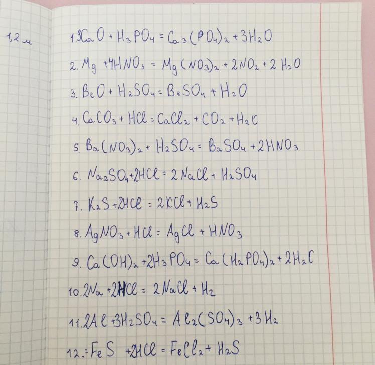 12. FeS + 2HCl = FeCI₂+H₂S↑