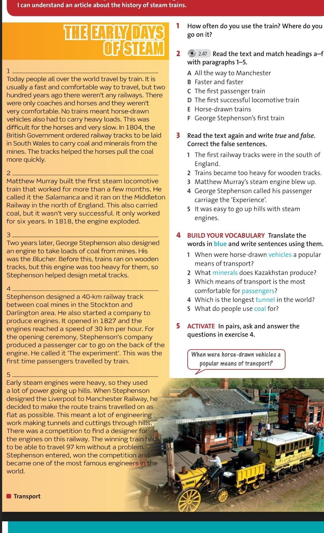 В 3-м абзаце говорится о поезде Джорджа Стивенсона, который изобрел двигатель - Blucher.