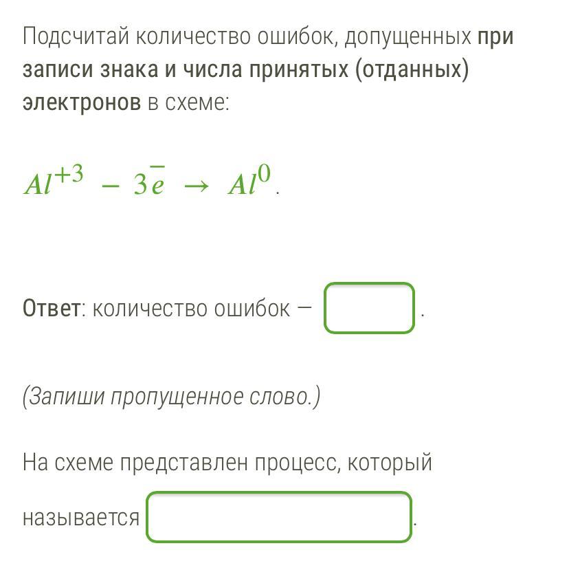 Подсчитай количество ошибок, допущенных при записи знака и числа принятых (отданных) электронов в схеме:
