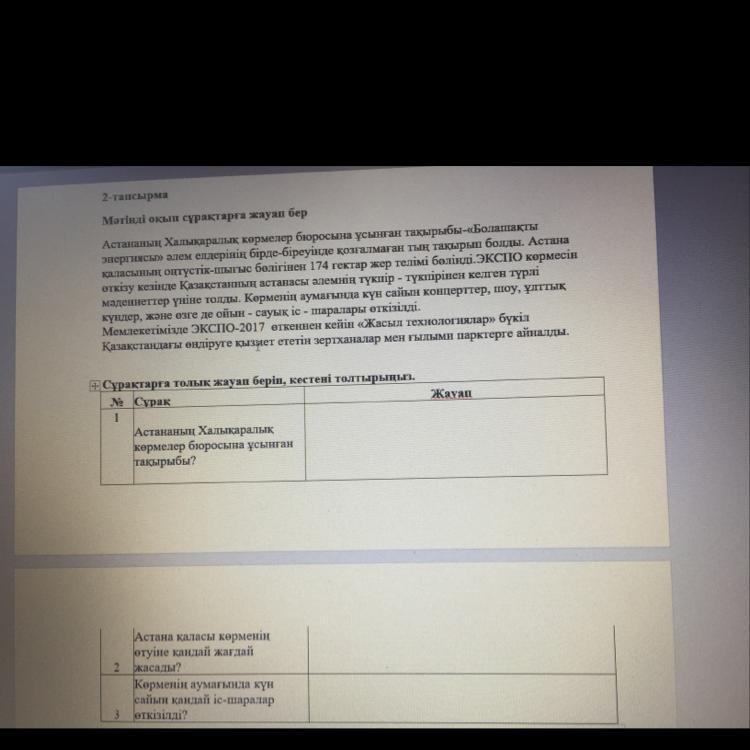 1) Астана халықаралық көрмелер бюросына ұсынған тақырыбы-" болашақты энергиясы" әлем елдерінің бірде - біреуінде қозғалмаған тың тақырып болды.
