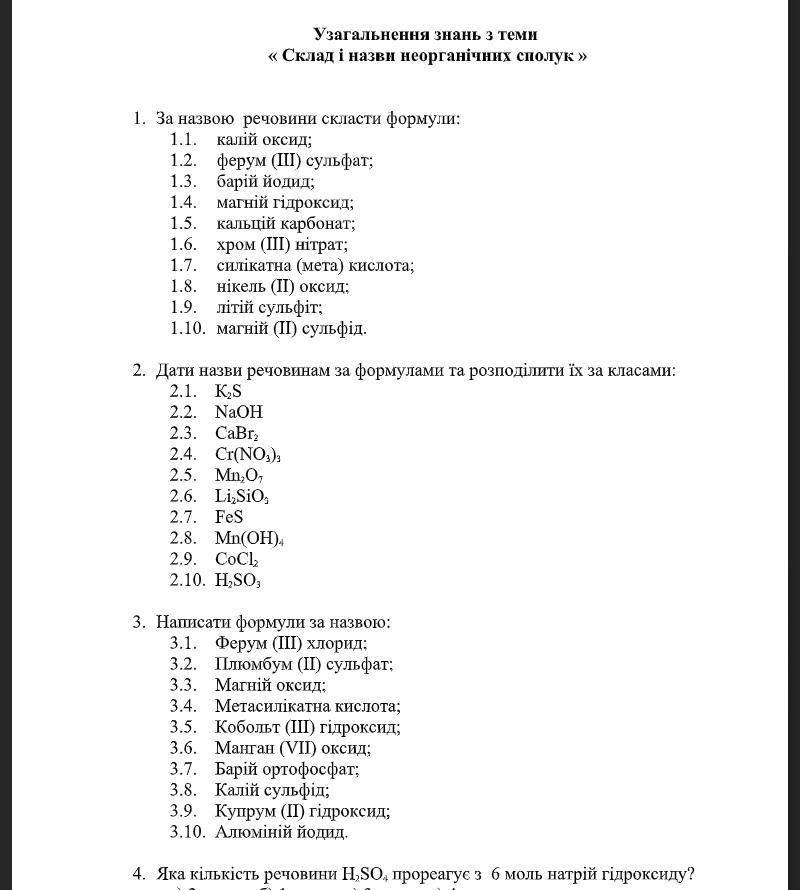 СРОЧНО ДОПОМОЖІТЬ ДАЮ 100б. Склад і назви неорганічних сполук. Только что б все вірно було