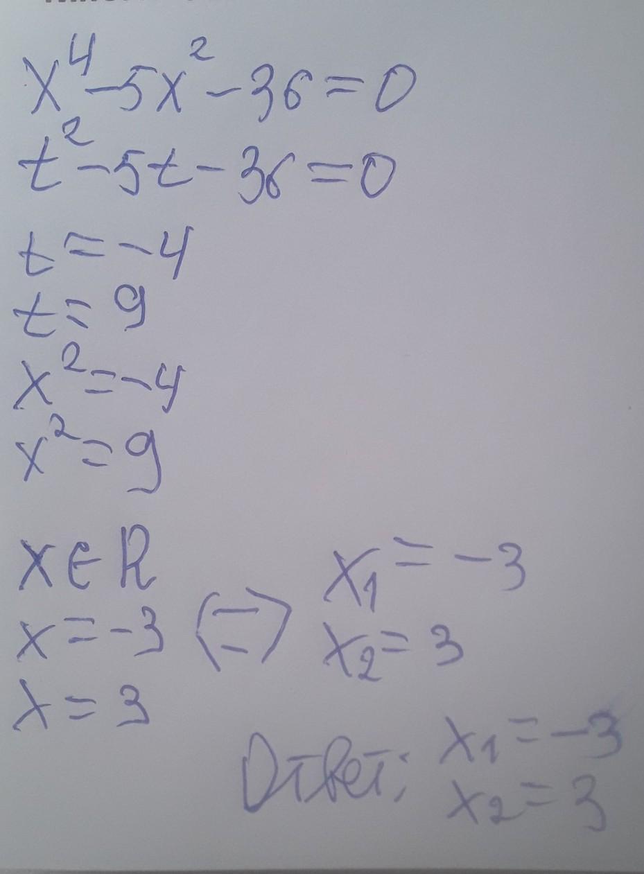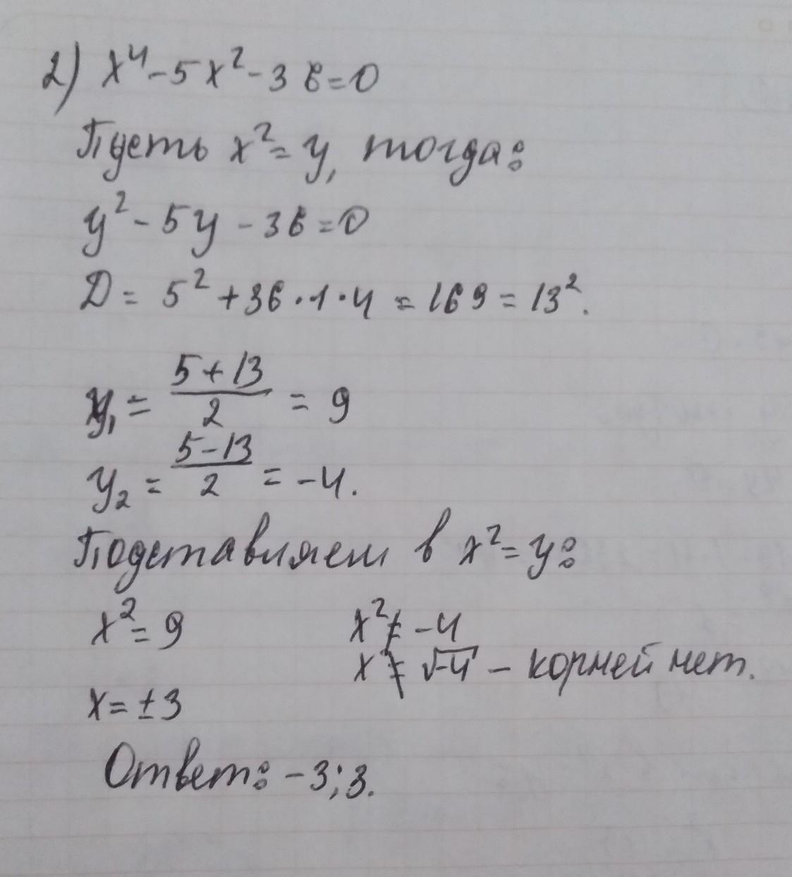 2) х^4-5х^2-36=0